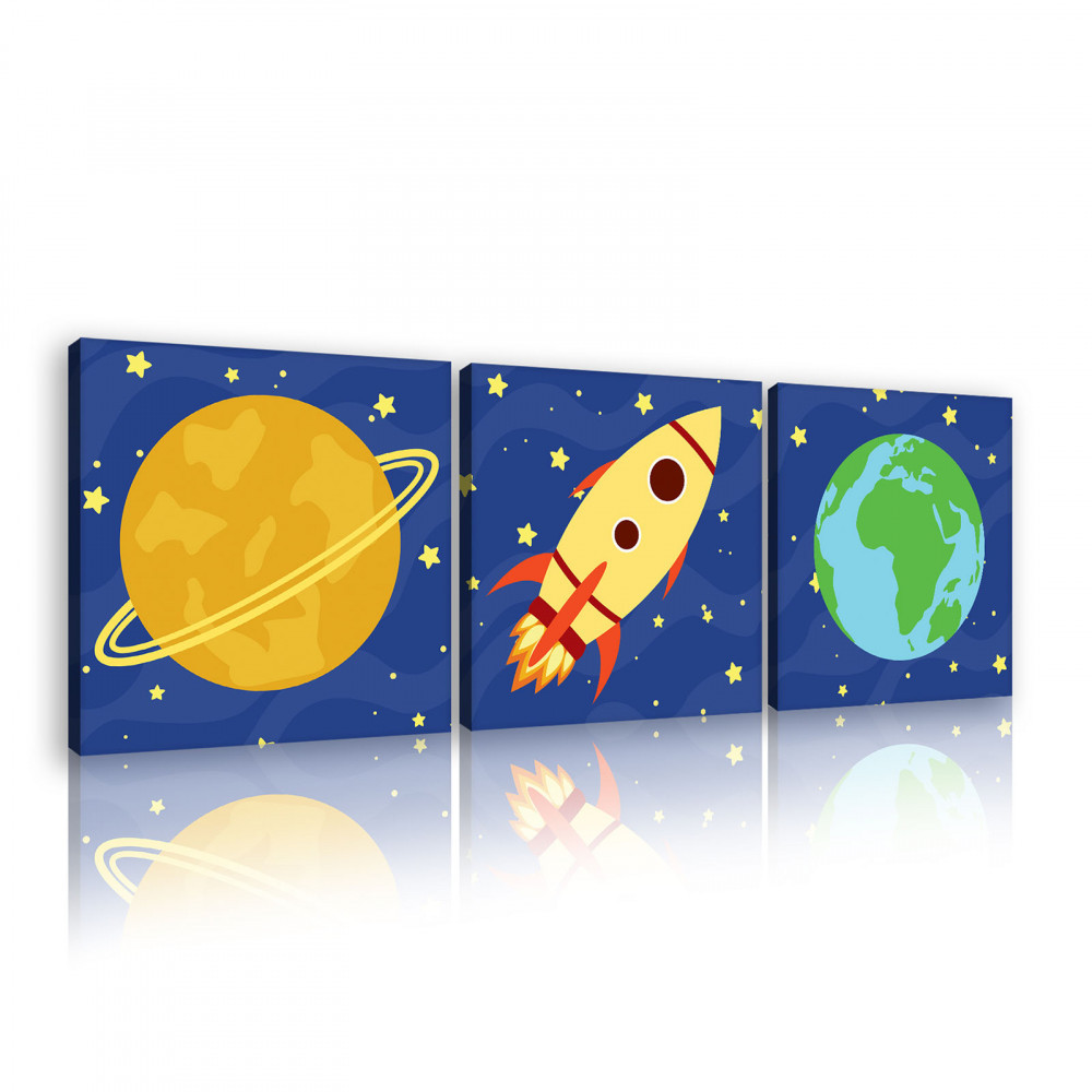 Vászonkép 3 darabos, Űrhajó és bolygók, 3 db 25x25 cm méret